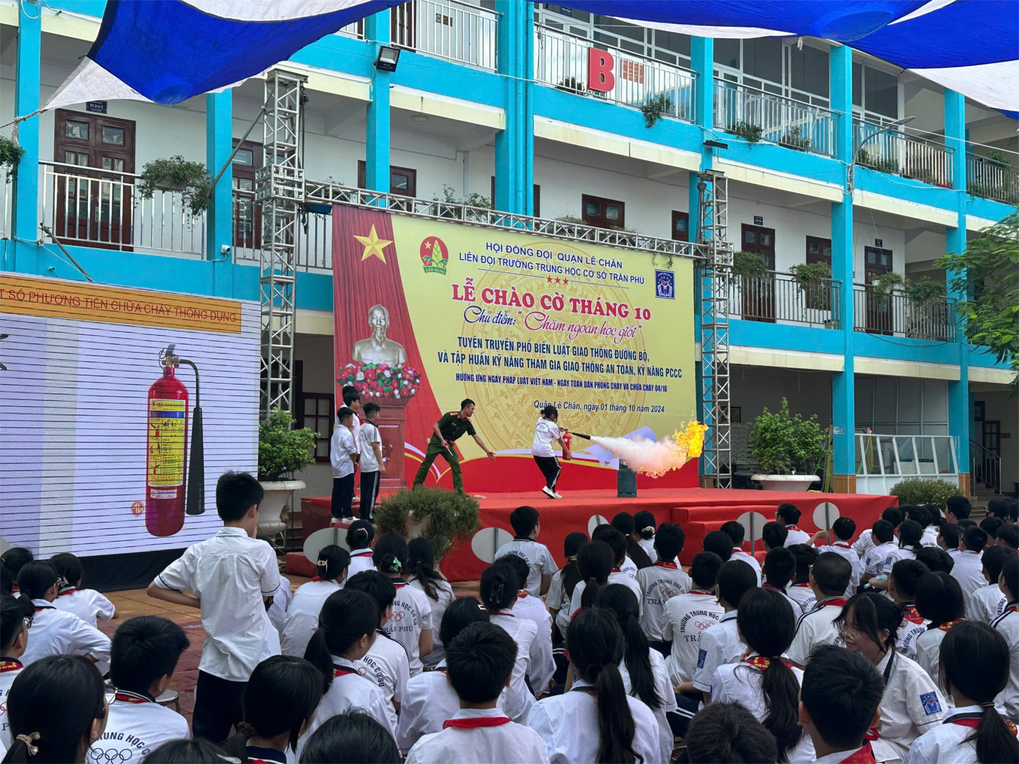 👩🚒👨🚒 Cũng trong chương trình Trường THCS Trần Phú đã phối hợp với Đội PCCC và cứu nạn cứu hộ - CATP Hải Phòng tuyên truyền kiến thức, kĩ năng về PCCC, kỹ năng thoát nạn khi có cháy cho các em học sinh. Buổi tuyên truyền do đ/c Đại úy Đỗ Quang Thái - cán bộ Đội PCCC và cứu nạn, cứu hộ - CATP Hải Phòng thực hiện.