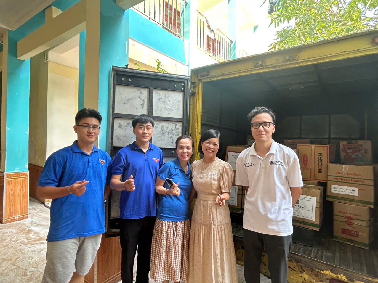 Ngày hôm nay, chuyến xe nghĩa tình đã lăn bánh, mang theo hơn 300 bộ SGK, vở viết, mỳ tôm, quần áo. Và đặc biệt là 200 chiếc áo phông mới - món quà từ cô Hiệu trưởng - chung tay cùng các em học sinh gửi đến các bạn nhỏ Trường THCS Kỳ Phú, Hà Tĩnh.
